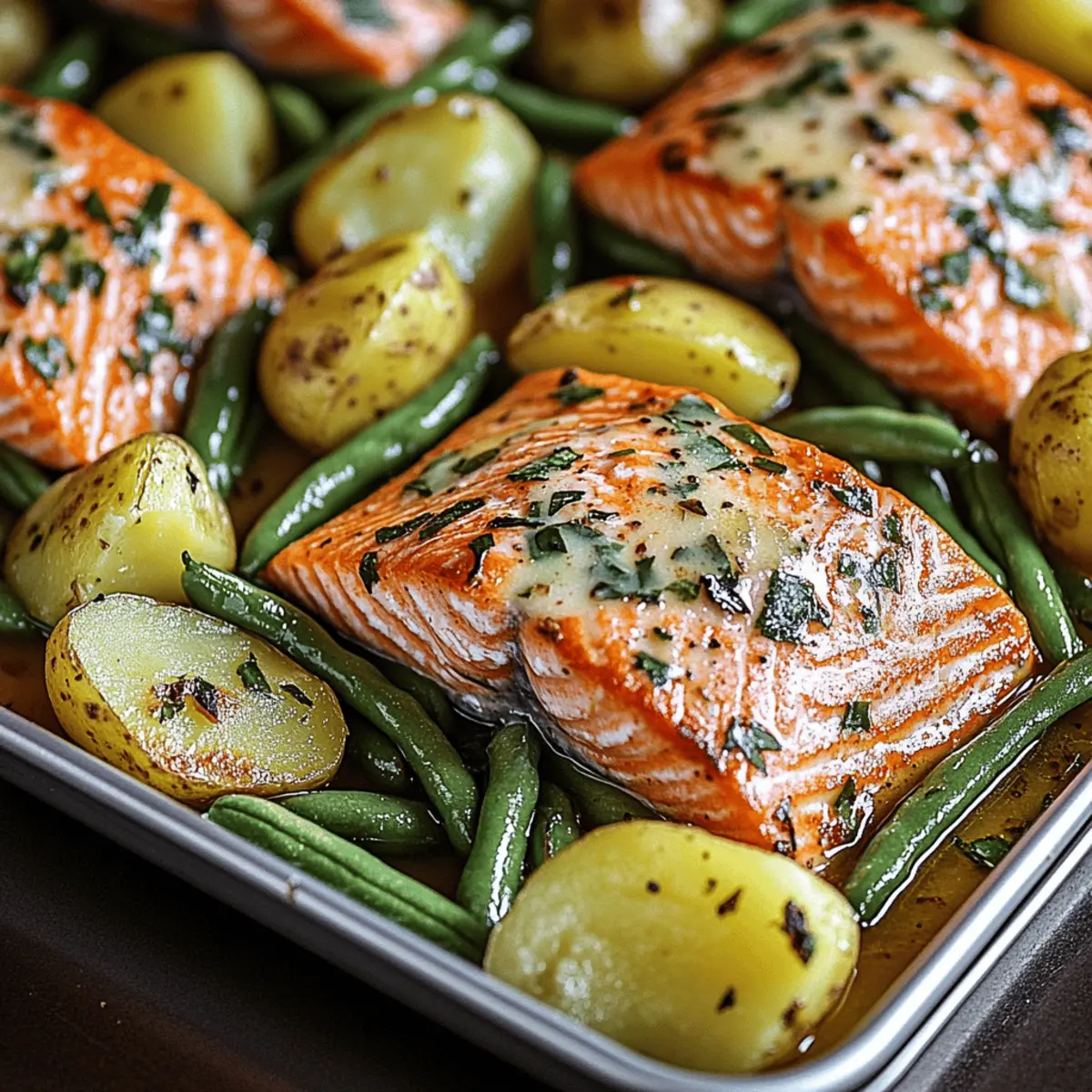 Blechlachs mit grünen Bohnen und Kartoffeln: Einfach und Lecker