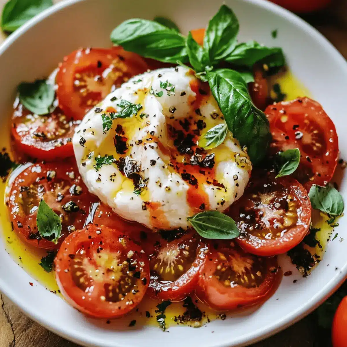 Die Textur dieses Gerichts ist ein Traum – die Burrata schmilzt förmlich im Mund, während die knackigen Tomaten einen erfrischenden Kontrast bieten. Egal, ob als köstlicher Appetizer bei einem geselligen Abend mit Freunden oder als leichtes Mittagessen an einem heißen Tag, dieses Rezept wird garantiert zum Highlight kommen.
