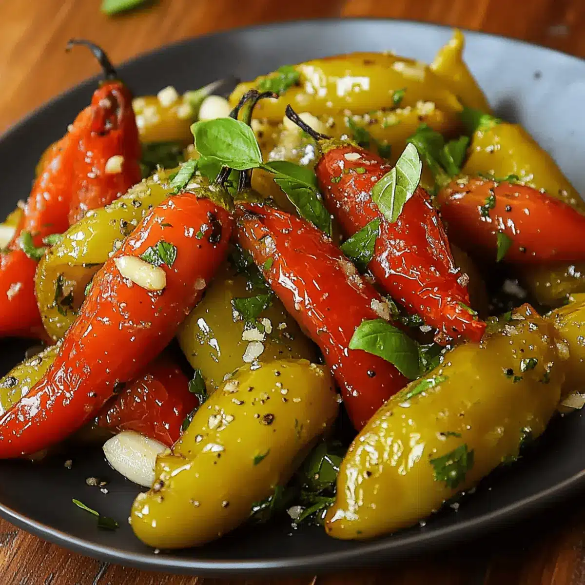 - Marinieren: Lasse die Peperoni vor dem Backen mindestens eine Stunde marinieren; das intensiviert den Geschmack der gebratenen Peperoni mit Knoblauch erheblich.