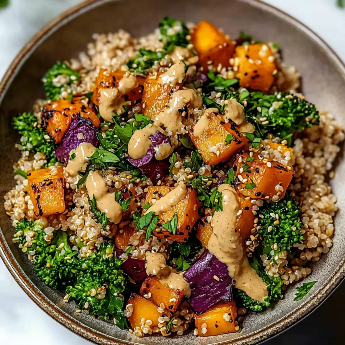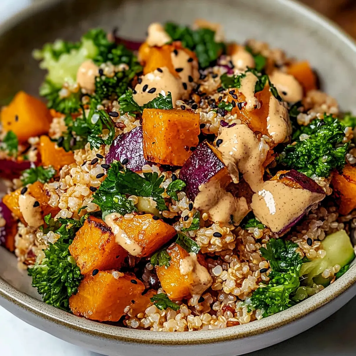 Unwiderstehlicher Gerösteter Süßkartoffel-Quinoa-Salat mit Sesam-Miso-Sauce