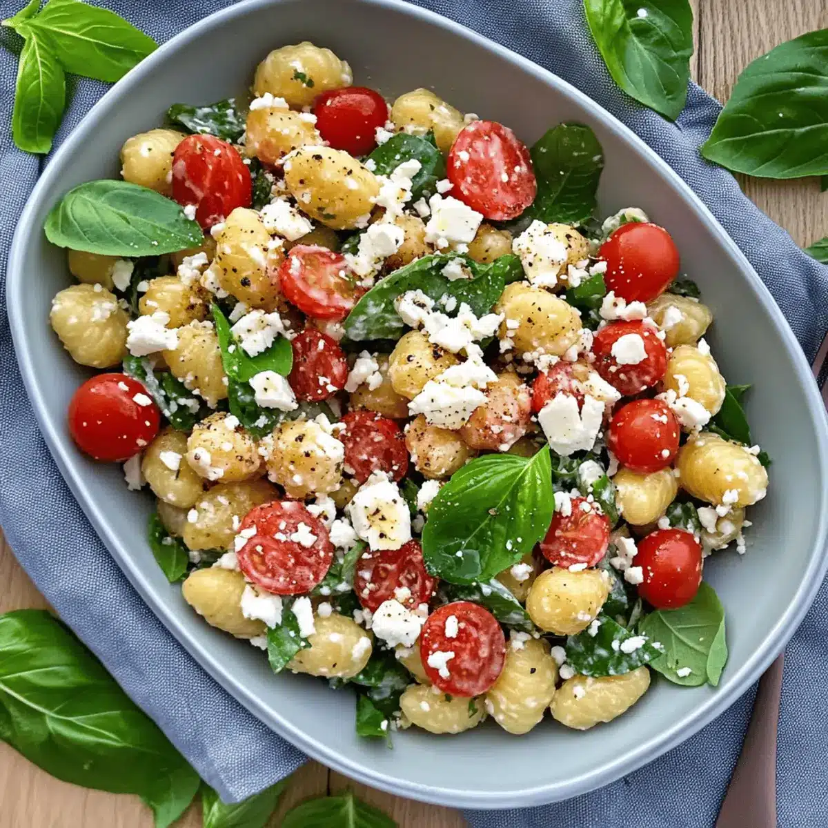 Köstlicher Gnocchi Salat mit Feta und frischen Tomaten