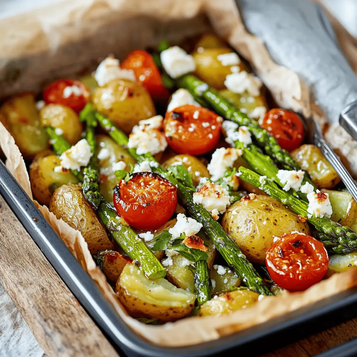 Vielfältige Aromen: Die Kombination aus goldbraunen Kartoffeln, frischem Spargel, saftigen Tomaten und cremigem Feta sorgt für ein einmaliges Geschmackserlebnis.