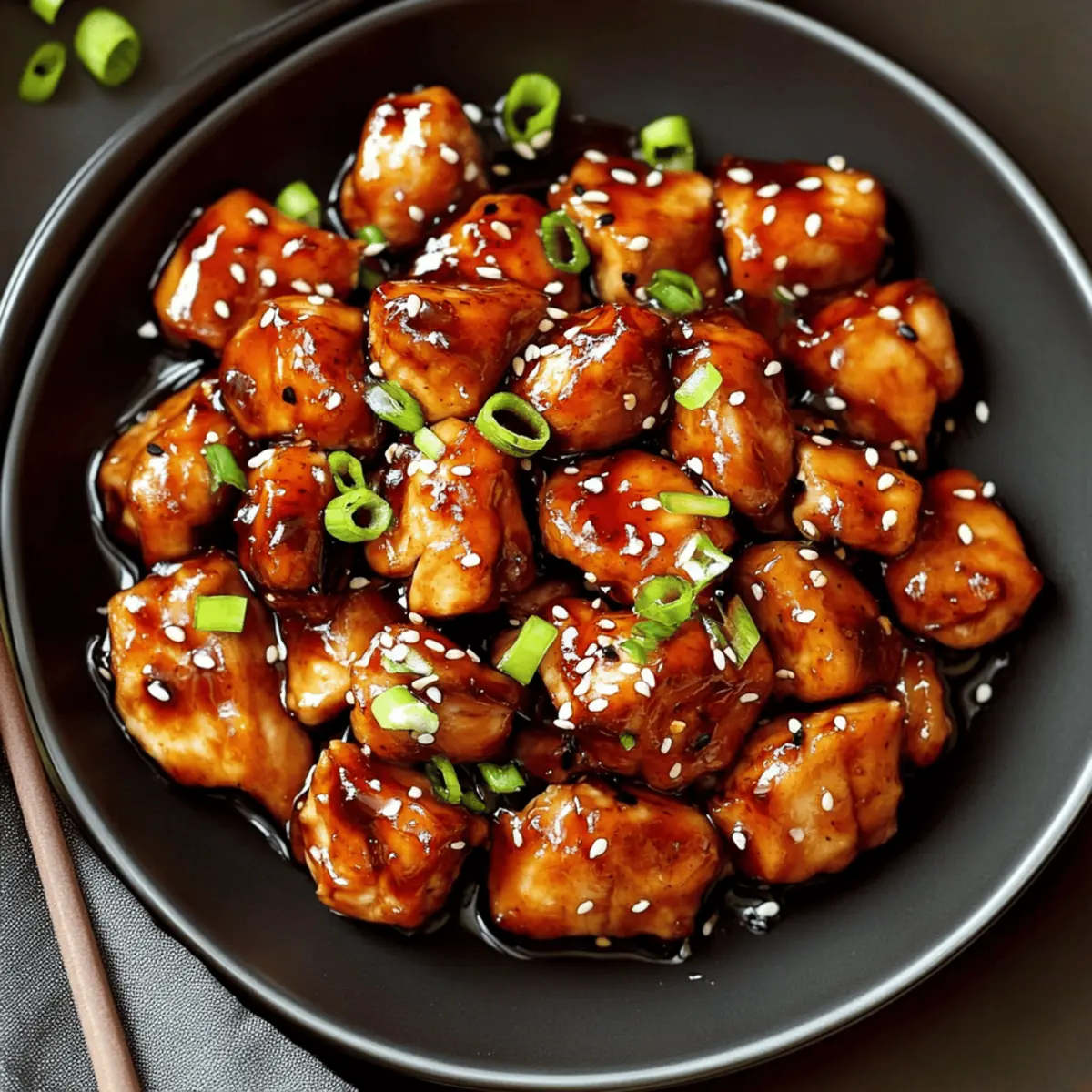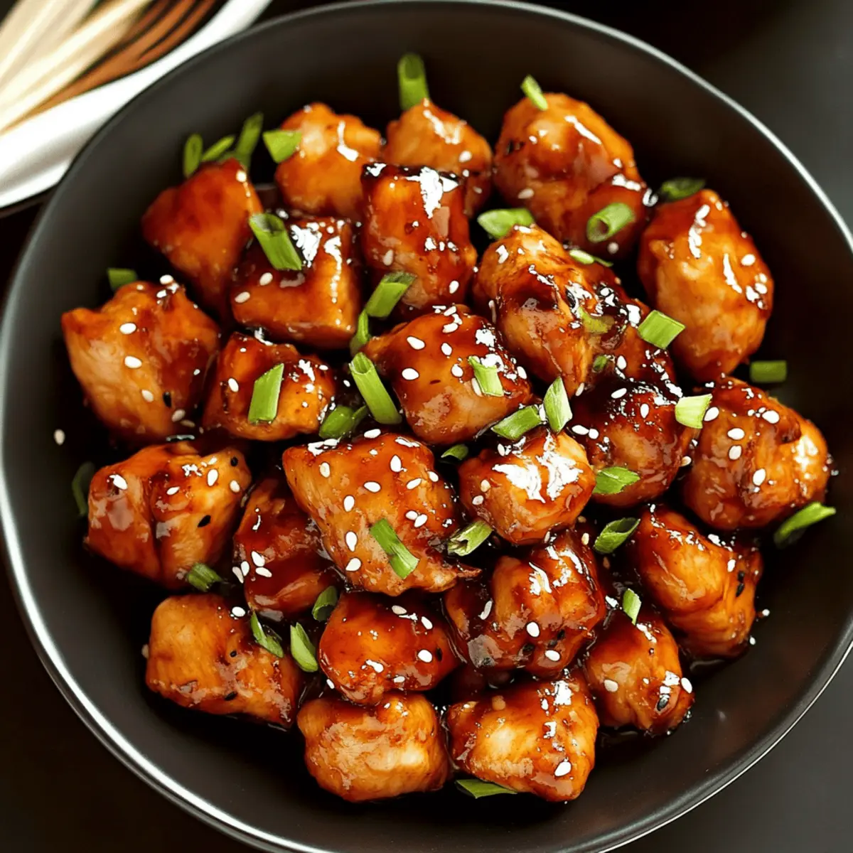 Anrichten & Servieren: Wende das Hähnchen in der Sauce, garniere es mit Sesamkörnern und frischen Frühlingszwiebeln. Serviere das Teriyaki Chicken sofort über dampfendem Reis oder Nudeln, begleitet von gedämpftem Gemüse.