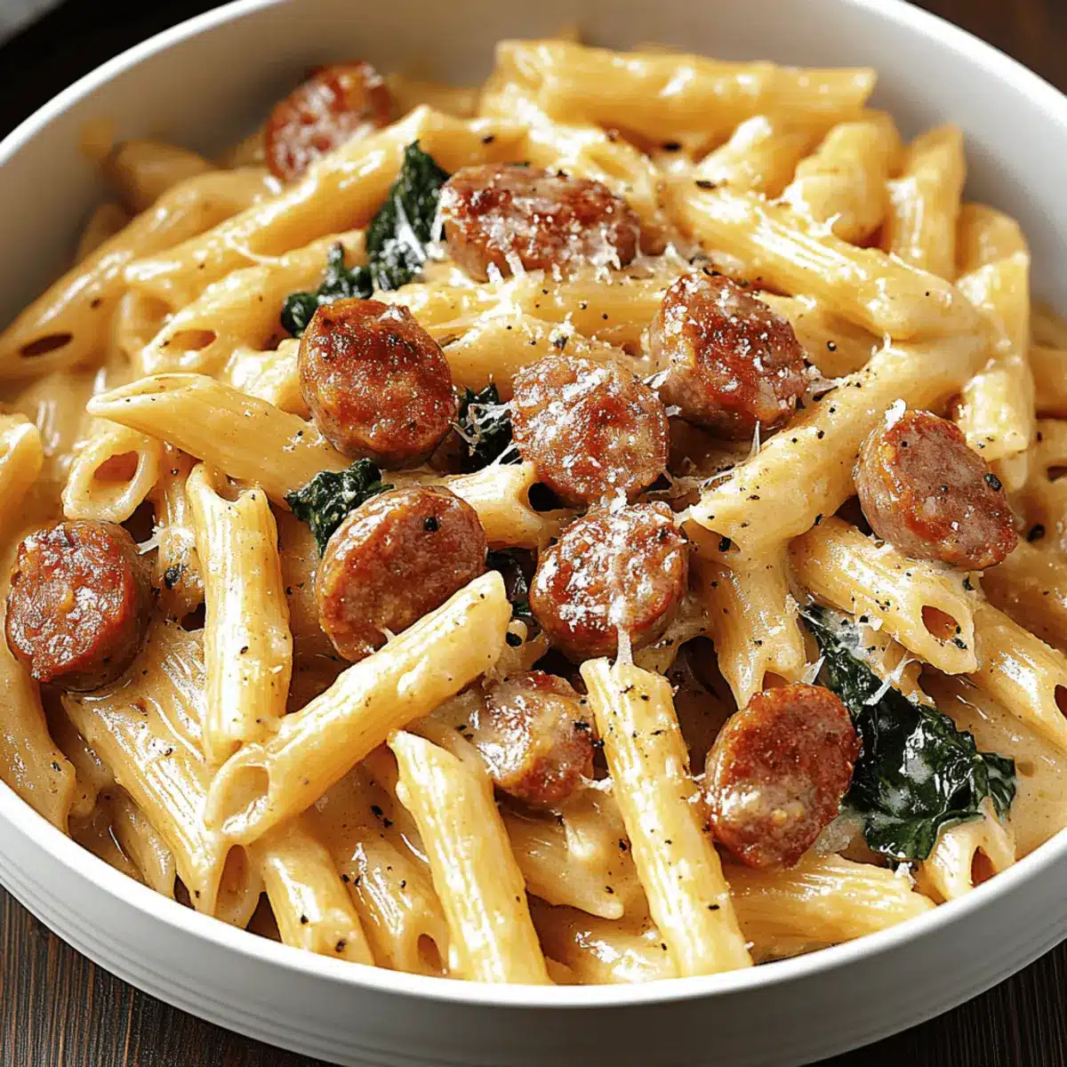 Es gibt Tage, an denen man einfach nach etwas Herzhaftem und Trost spendendem verlangt, und genau dann finde ich mich oft in der Küche wieder, auf der Suche nach einer köstlichen Lösung. Vor kurzem kam ich auf die Idee, ein Gericht zu kreieren, das mir sofort das Gefühl von Urlaub in der Toskana beschert – und so entstand meine Creamy Tuscan Sausage Pasta. Die Kombination aus würziger italienischer Wurst, aromatischen, sonnengetrockneten Tomaten und frischem Spinat, alles in einer samtigen, knoblauchreichen Sahnesauce, ist einfach himmlisch! Innerhalb von nur 30 Minuten zauberst du ein Gericht, das nicht nur beeindruckend aussieht, sondern auch jeden Gaumen umhauen wird. Ideal für hektische Abende oder besondere Anlässe, vereint dieses Rezept alles, was du dir von einem schnellen und dennoch reichhaltigen Essen wünschen kannst. Lass uns gemeinsam in die Welt der Aromen eintauchen und dieses perfekte Wohlfühlessen zubereiten!